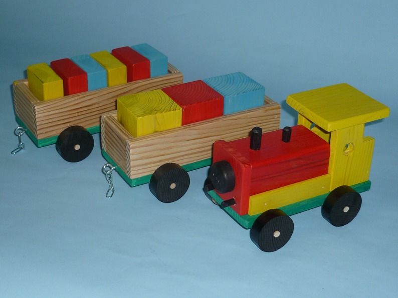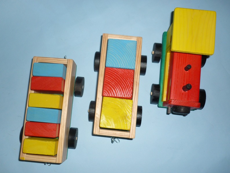 Il treno in legno è composto da tre tipi di legno: legno di abete e legno di tiglio , le ruote e i perni in legno di ramino. I ganci di collegamenti tra un vagone e l’altro sono in ferro zincato “ganci a forma di C e a forma di O“ e un pezzo di tre anelli di catena. Il giocattolo in legno è smussato su tutti i suoi angoli e lati, Il treno cod 311213 è composto da due vagoni e una motrice, L’articolo cod. “311213” viene fornito in tre versioni: verniciato con colori ad acqua, ( euro 32 ) al naturale già assemblato ( euro 25 ) e da verniciare,quindi da assemblare ( euro 20 ) su richiesta può essere venduto con più vagoni soltanto. Il trenino in legno non è adatto a bambini inferiore ed 3 anni.