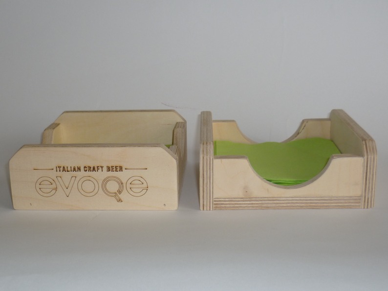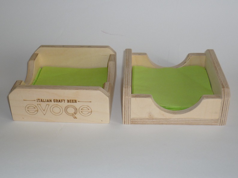Il porta tovaglioli è costruito totalmente in legno di multistrato di betulla, la sua forma insolita e robusta, contiene ca 25 tovaglioli di dimensioni 12,5×12,5 (non inclusi). Smussato in tutti i suoi lati ed angoli viene venduto sia colorato a Vs richiesta che al grezzo. Vi è la possibilità in incidere il logo dal locale. Per questo articolo, come per tutti gli altri che trovate sul sito, è stato utilizzato legno recuperato, non è stato abbattuto alcun nuovo albero ed è prodotto in Italia, “made in Italy”.