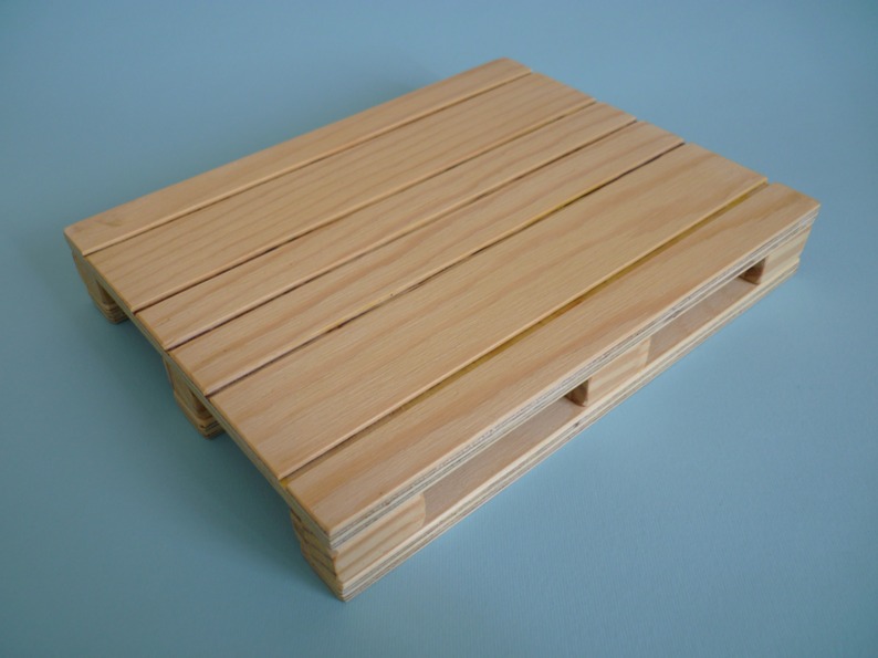 Il bancale in miniatura è costruito in legno di conifera di abete, smussato in tutti i suoi lati e verniciato di colore trasparente ad acqua. Nella parte superiore vi sono dei tagli per simulare le assi (su richiesta il piano può essere senza tagli): Può essere richiesto di dimensioni diverse, usato come porta bicchieri o affettati. Il bancale in miniatura è un articolo da bar, agriturismo, pub etc. Per questo articolo, come per tutti gli altri che trovate sul sito, non è stato abbattuto alcun albero ed è prodotto in Italia, “made in Italy”.