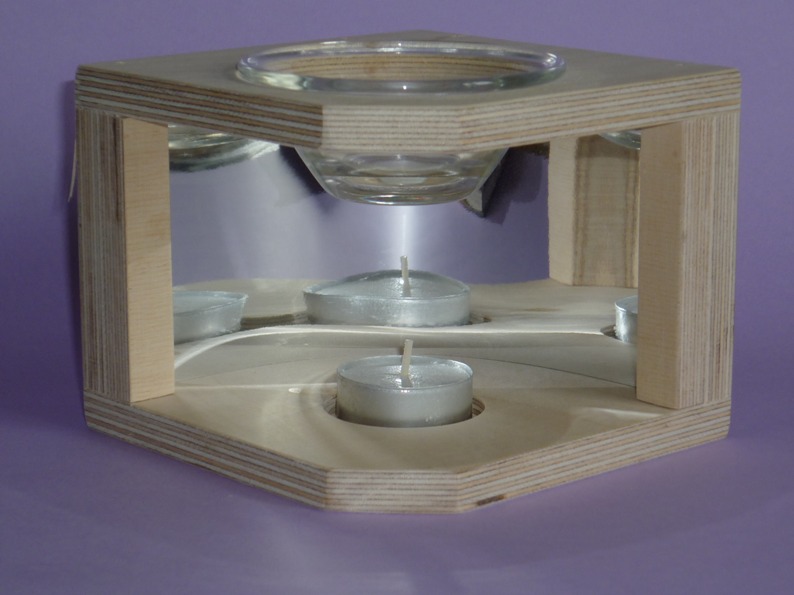 Il brucia essenze è costruito da due materiali, la struttura è in legno di multistrato di betulla, all’interno vi è un foglio di laminato alluminio lucido per far illuminare il lumino. Viene venduto al grezzo, non verniciato,smussato in tutti i suoi lati ed angoli,stuccato e pronto per essere colorato a vostro piacere. In dotazione vi è una vaschetta in vetro temperato e un lumino. Ottimo articolo come bomboniera per matrimoni, battesimi etc. Per questo articolo, come per tutti gli altri che trovate sul sito, non è stato abbattuto alcun albero ed è prodotto in Italia, “made in Italy”.