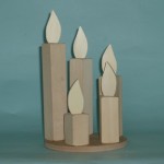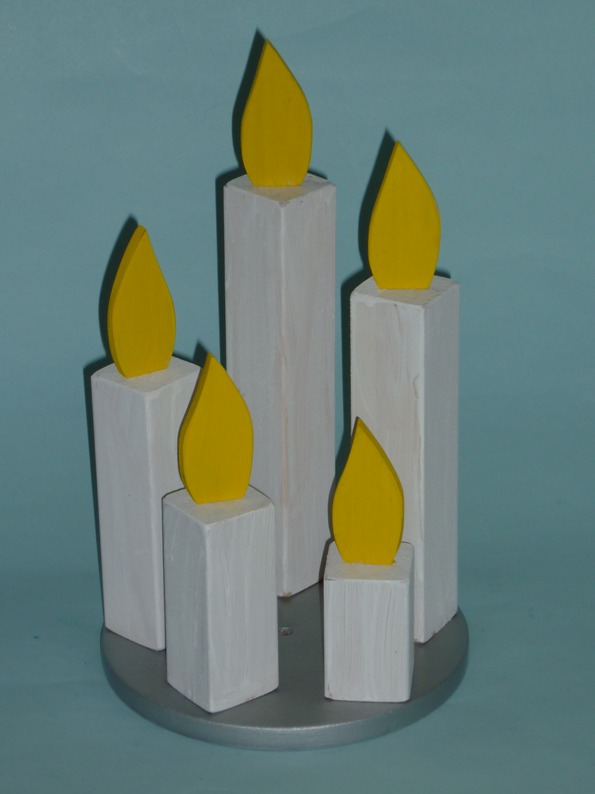 Le candele sono in legno di tiglio, la forma è rettangolare, ca. cm. 3×3 di cinque altezze diverse, ca. cm. 5,8,11,14,17,le fiammelle sono in legno di multistrato di pioppo ,il piatto è in legno di mdf di dimensioni ca. cm.14.5, smussato in tutti i suoi lati,è un articolo da decorare,oppure da incollare la carta regalo, da verniciare. Potete posizionarle le candele a vostro piacere, (vedi foto dimostrative). L’articolo cod “271014” viene venduto al grezzo(non verniciato e non trattato). Su richiesta possono essere modificate l’altezza e la quantità. Per questo articolo, come per tutti gli altri che trovate sul sito, non è stato abbattuto alcun albero ed è prodotto in Italia, “made in Italy”.