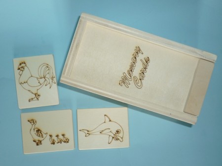 Le mermoy card è un gioco per tutte le età, sono in multistrato di pioppo incise a laser delle figure di animali,frutta, case, castelli, smussate in tutti i suoi lati, viene venduta con una scatola in legno che contiene 10 disegni, (doppie) per un totale di 20 mattonelle. Le dimensioni delle mattonelle sono ca. cm. 6×7,5. Per questo articolo, come per tutti gli altri che trovate sul sito, è stato utilizzato legno recuperato, non è stato abbattuto alcun nuovo albero ed è prodotto in Italia, “made in Italy”.