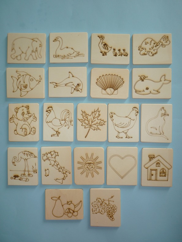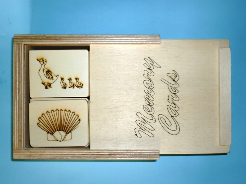 Le mermoy card è un gioco per tutte le età, per attivare la memoria, sono in multistrato di pioppo incise a laser , con incisioni di figure di animali,frutta, case, castelli, smussate in tutti i suoi lati, viene venduta con una scatola in legno che contiene 20 disegni, (doppie) per un totale di 40 mattonelle. Le dimensioni delle mattonelle sono ca. cm. 6×7,5. Per questo articolo, come per tutti gli altri che trovate sul sito, è stato utilizzato legno recuperato, non è stato abbattuto alcun nuovo albero ed è prodotto in Italia, “made in Italy.