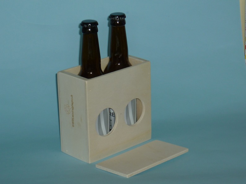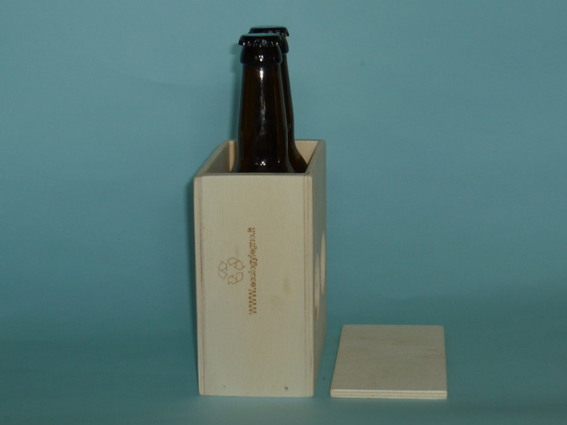 Il porta bottiglie birra contiene due birre da cl. 33 (non incluse); è costruito in legno di multistrato di pioppo. Ha due fori per vedere l’etichetta della birra. Smussato in tutti i suoi angoli e lati, viene venduto al grezzo. Vi è la possibilità di incidere logo, frase, etc. Viene dotato di un coperchio per riutilizzarlo (vedasi foto). Ottimo articolo da regalo. Per questo articolo, come per tutti gli altri che trovate sul sito, è stato utilizzato legno recuperato, non è stato abbattuto alcun nuovo albero ed è prodotto in Italia, “made in Italy”.