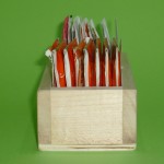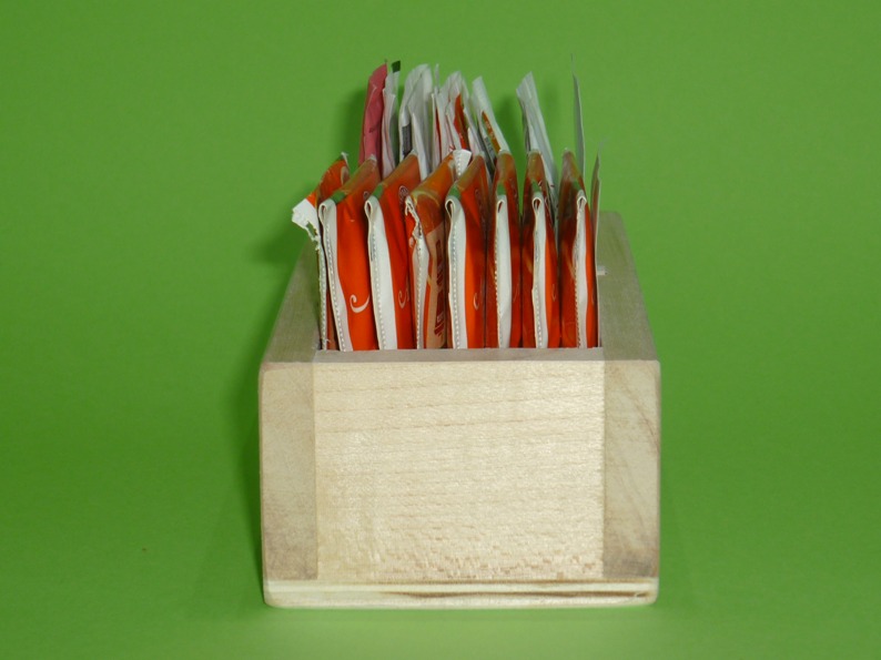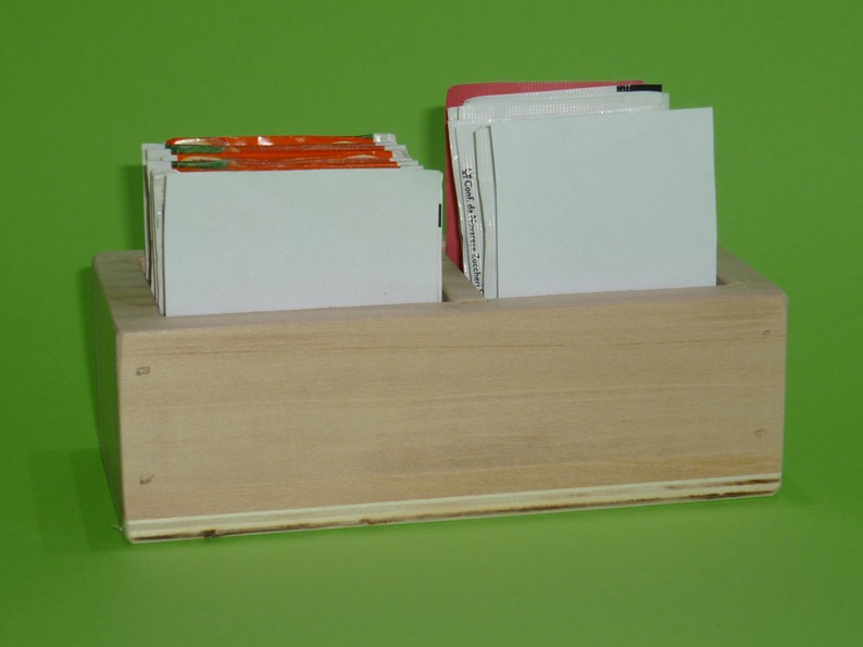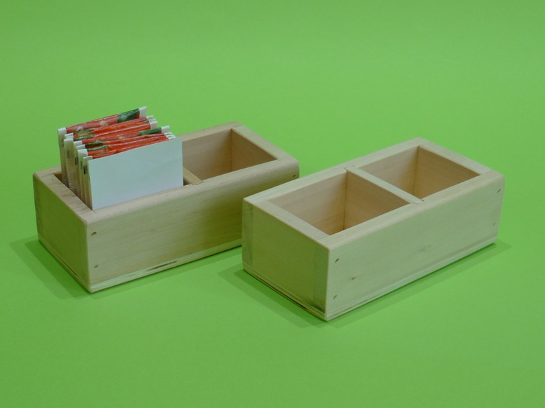 La cassettina porta bustine da tea e zucchero, è costruita da due materiali,la struttura e il divisorio in legno di tiglio e il fondo in legno di multistrato di pioppo,smussata in tutti i suoi lati ed angoli ,contiene ca. 10 bustine di tea ( non inclusi ) e 12 bustine di zucchero. Viene venduta al grezzo oppure colorata a Vs. gradimento, colori tabella Ral.Vi è la possibilità di richiedere il porta bustine da tea con dimensioni diverse alle attuali, ( B x h ca. cm. 5.5x 6.5), il prezzo non cambia, e la possibilità di incidere sui lati il logo del locale oppure una frase di Vs. gradimento. La cassetta porta bustine da tea è un articolo adatto a bar, agriturismo, pub etc. Per questo articolo, come per tutti gli altri che trovate sul sito, non è stato abbattuto alcun albero ed è prodotto in Italia, “made in Italy”.