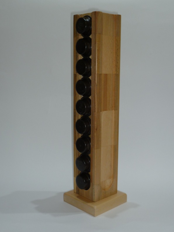 Il porta cialde è costruito da vari tipi di legno: faggio, rovere, tiglio, etc., recuperato da scarti. Verniciati di colore trasparente ad acqua per far risaltare le venature dei legni. Il porta cialde contiene 9 cialde (non incluse) per lato, per un totale di 36 cialde. Il piatto non è girevole, la torre misura ca. cm. 76×76 h 42. Molto bello e robusto, funzionale, pesante, ottima idea per casa oppure come regalo. Disponibili soltanto 01 pezzo. Per questo articolo, come per tutti gli altri che trovate sul sito, è stato utilizzato legno recuperato, non è stato abbattuto alcun nuovo albero ed è prodotto in Italia, “made in Italy”.