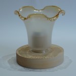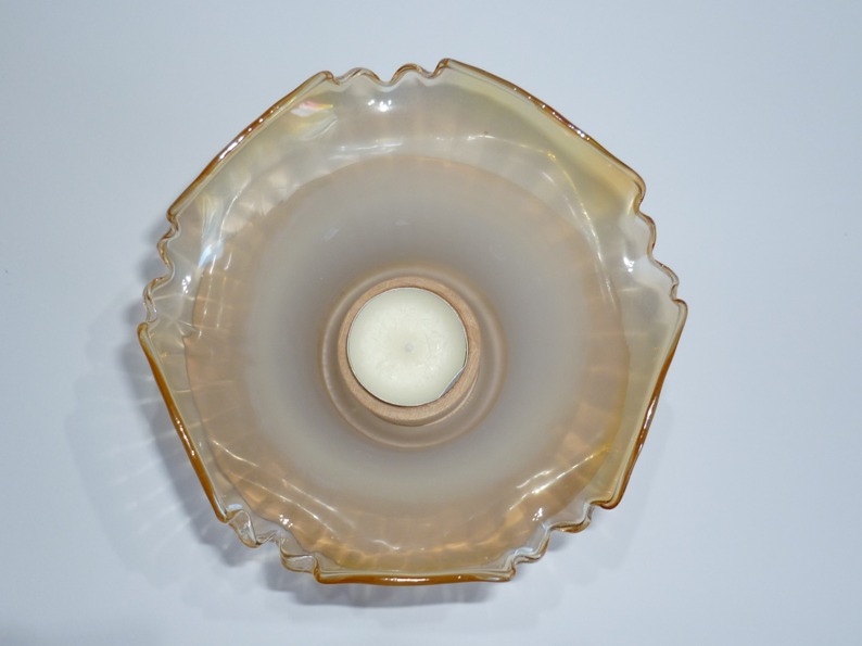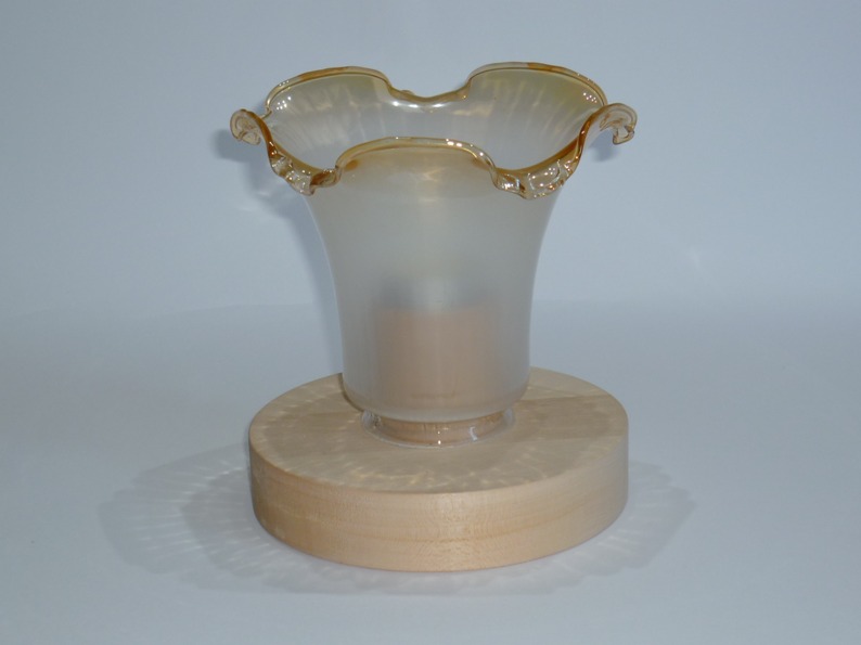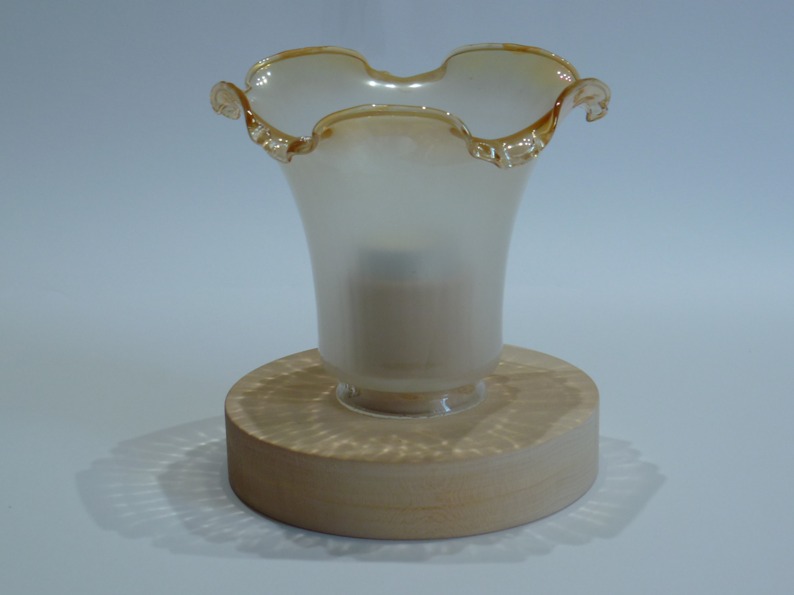 Il porta lumini è prodotto con 2 tipi di legno, la base(cerchio) è in legno di tiglio, il porta lumini è in legno di faggio ( da verniciare) mentre il “fiore” è in vetro recuperato da un lampadario. Il porta lumini è pesante e resistente, per poter lavare il “fiore basta sfilarlo, invece per poter colorare i pezzi in legno vi è la possibilità di svitare la parte centrale “porta lumino”.
