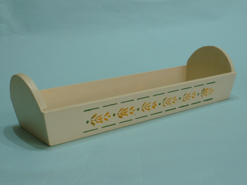 Il porta pane baguette è costruito in legno di multistrato di pioppo, semplice il suo designed, ottimo come centro tavola, smussato in tutti i suoi lati, stuccato, pronto per decorarlo a Vostro piacimento incollando carta colorata , foglie secche oppure decorarla con la tecnica decoupage.