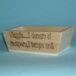 La vaschetta poeta bustine da zucchero è costruita in legno di tiglio. Iil fondo in legno di multistrato di pioppo. Smussata in tutti i suoi lati ed angoli, viene venduta al grezzo oppure verniciata con colore trasparente. Su richiesta, per personalizzare la vaschetta o promozionare il locale e la Vs. filosofia è possibile incidere sui lati il logo del locale oppure una frase di Vs. gradimento. La vaschetta porta bustine da zucchero è un articolo adatto a bar, agriturismo, pub etc. Per questo articolo, come per tutti gli altri che trovate sul sito, non è stato abbattuto alcun albero ed è prodotto in Italia, “made in Italy”.