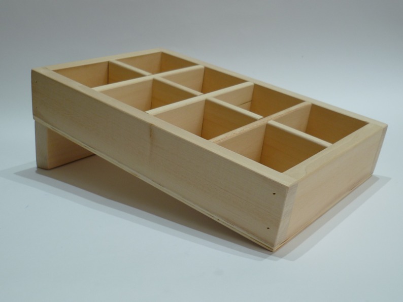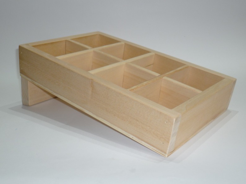 Il portabustine è costruito in legno di tiglio e il fondo in multistrato di pioppo, contiene 8 caselle per 8 tipi di bustine (the e/o tisane). Può essere posizionato in due orientamenti grazie al supporto inclinato posteriore (vedi foto), è un ottimo articolo per alberghi ,per b&b, garni e gasthoff, laddove la colazione è internazionale.