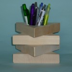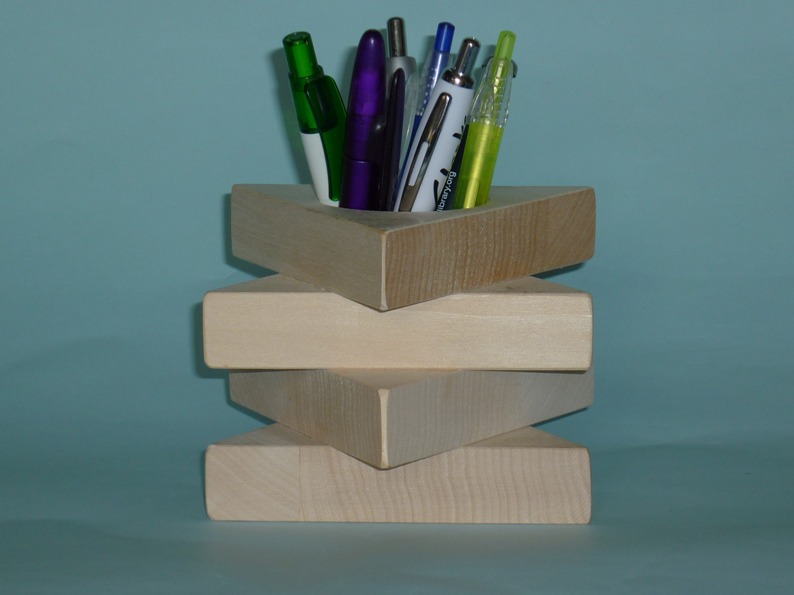 Il portapenne è costruito in legno di tiglio: La sua forma deriva dall’incollaggio di quattro pezzi a forma di triangolo. II foro centrale è di ca. cm 5, il design è particolare e insolito. Viene venduto verniciato di colore trasparente. Per questo articolo, come per tutti gli altri che trovate sul sito, non è stato abbattuto alcun albero ed è prodotto in Italia, “made in Italy.