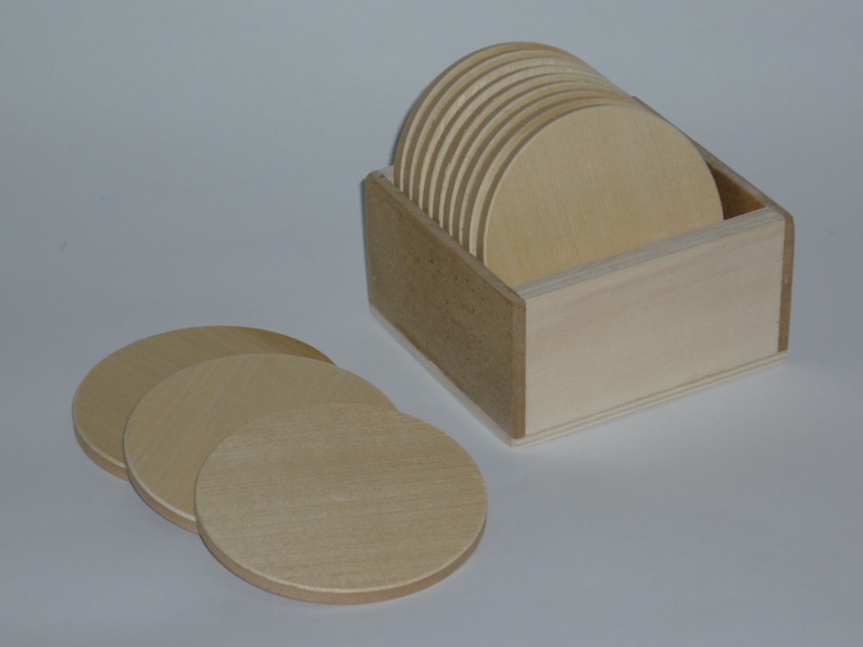 I sottobicchieri sono in M.D.F. e in legno di pioppo il diametro è di ca.cm 8.5 con spessore ca.cm 06, sono molto belli per la sua venatura del legno, la parte in mdf e la scatola potete colorarla a Vostro piacimento oppure con la tecnica decoupage. Semplice nel suo designed e funzionale, occupano poco spazio. L’articolo viene venduto con 12 cerchi “ sottobicchieri” e la sua scatola(come da foto).Ottimo articolo anche da fare un regalo.
