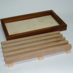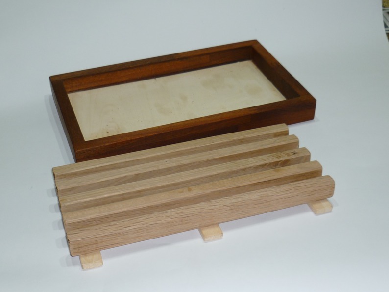 Tagliere per tagliare il pane costruito di tre tipi di legno, telaio in lamellare di mogano, fondo del tagliere in multistrato di pioppo e la griglia in legno di rovere oppure in faggio, la griglia è estraibile. Viene venduto al grezzo, l’articolo è ecologico, su richiesta si può produrre l’articolo con misure a vostro piacimento. Smussato in tutti i suoi lati, il tagliere si presenta robusto.